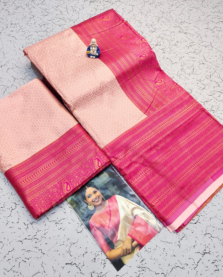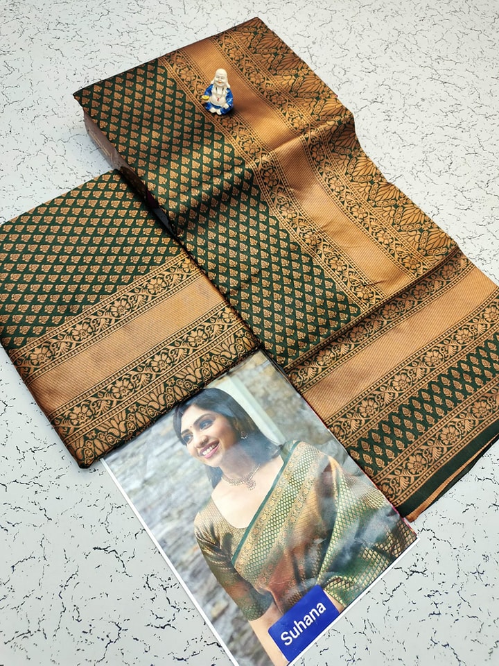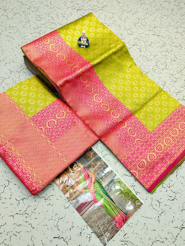 ๐งถ *Premium Wedding Collection Soft Silk Material Copper Zari Saree with Contrast & running Self Border and Pallu*