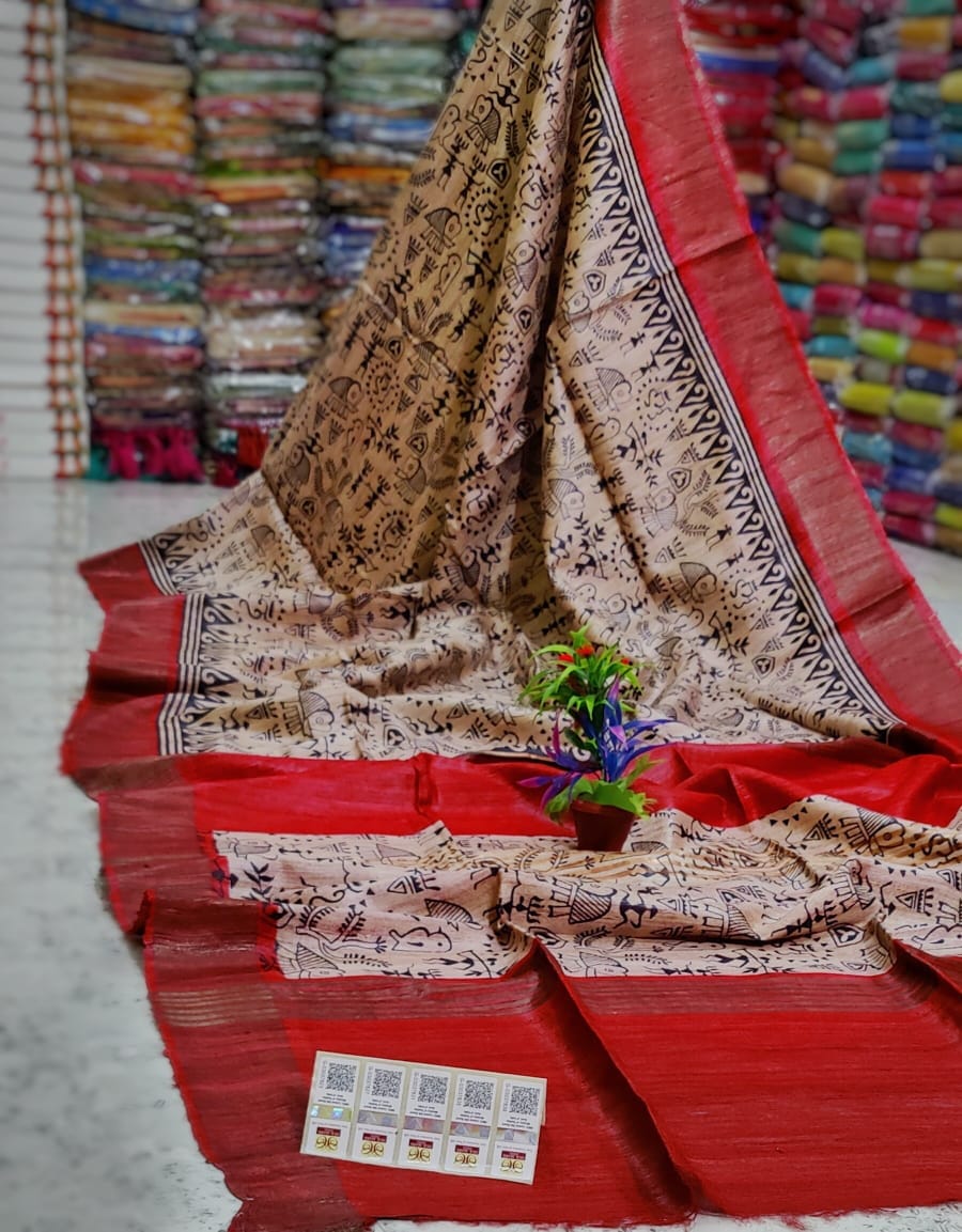 Silk mark tag Pure tassar gicha screen print saree with BP Booking no mentioned 👇👇👇 8️⃣3️⃣8️⃣9️⃣9️⃣0️⃣5️⃣9️⃣6️⃣5️⃣ Avl..