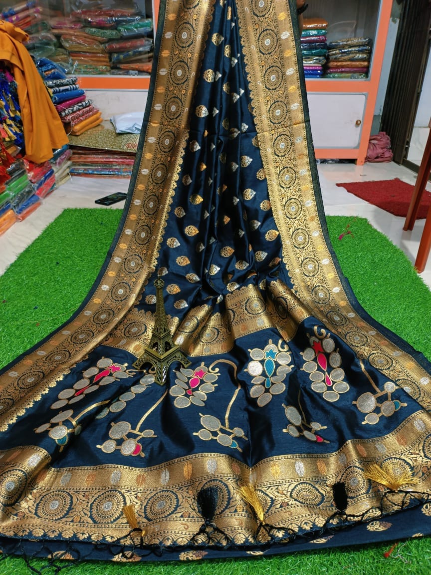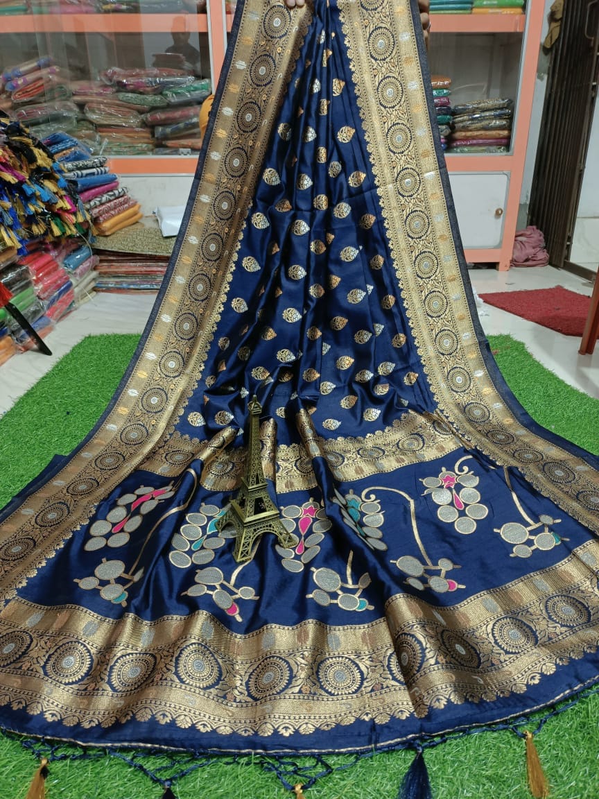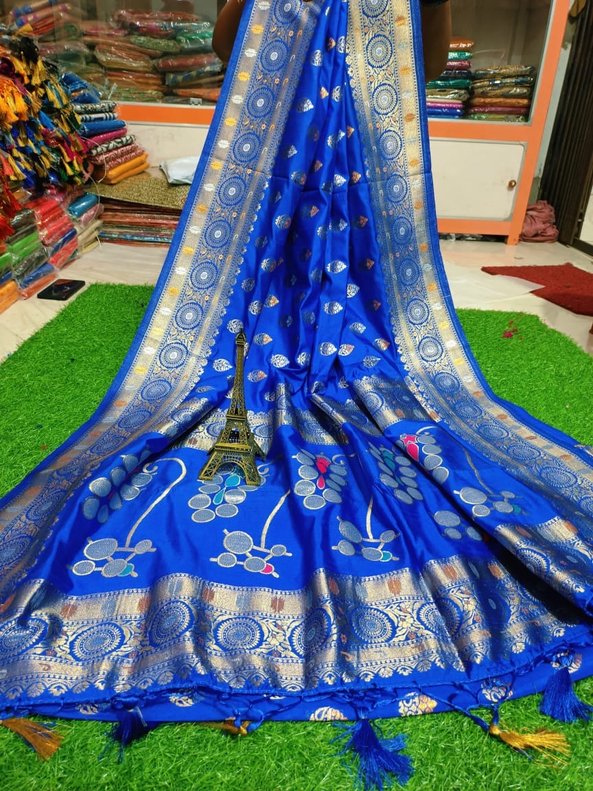 Available silver minakari Bengalur soft silk with BP all over silver + brown work price please contact me on WhatsApp chek avl then pay..
